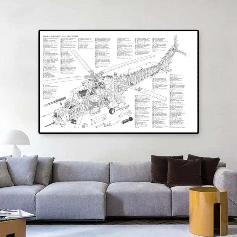 $8.07 – $18.29Price range: $8.07 through $18.29Black White Mi-24 Military Helicopter Cutaway Drawing Key Poster Prints Wall Art Canvas Painting for Living Room Home Decoration