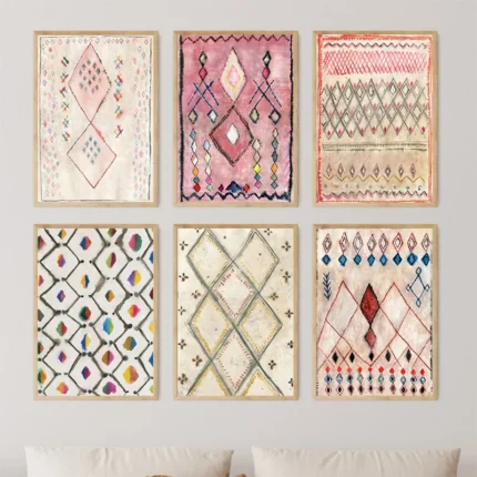Moroccan Rug Watercolor Art Print Blush Pink Rug Painting Canvas Poster Modern Boho Wall Picture Morocco Travel Gift Home Decor