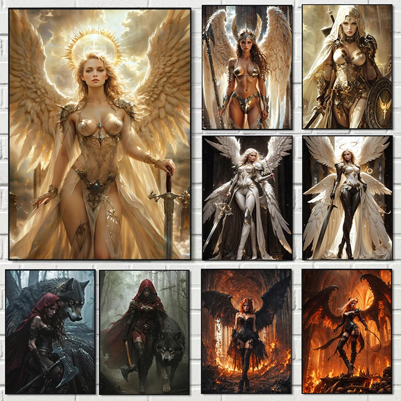 Abstract Fantasy Art Battle Angel Sexy Demon Fashion Posters Prints Canvas Painting Wall Art Picture Living Room Home Decor