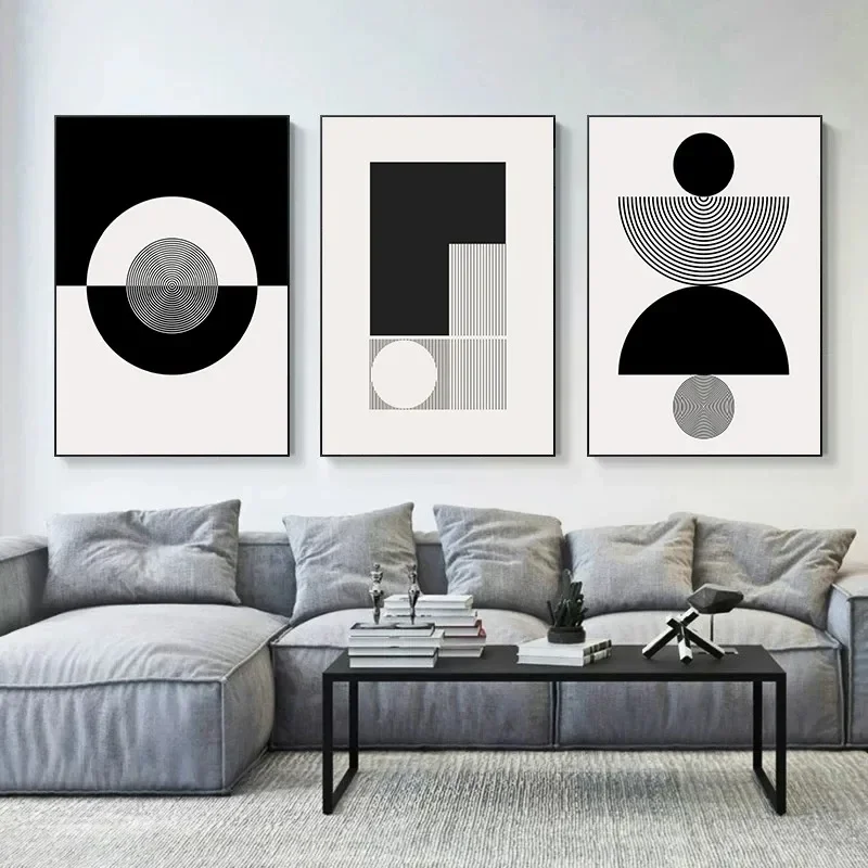 Abstract Modern Canvas Painting Art Geometrical Shapes Poster Black White Wall Art for Living Room Home Decoration Mural