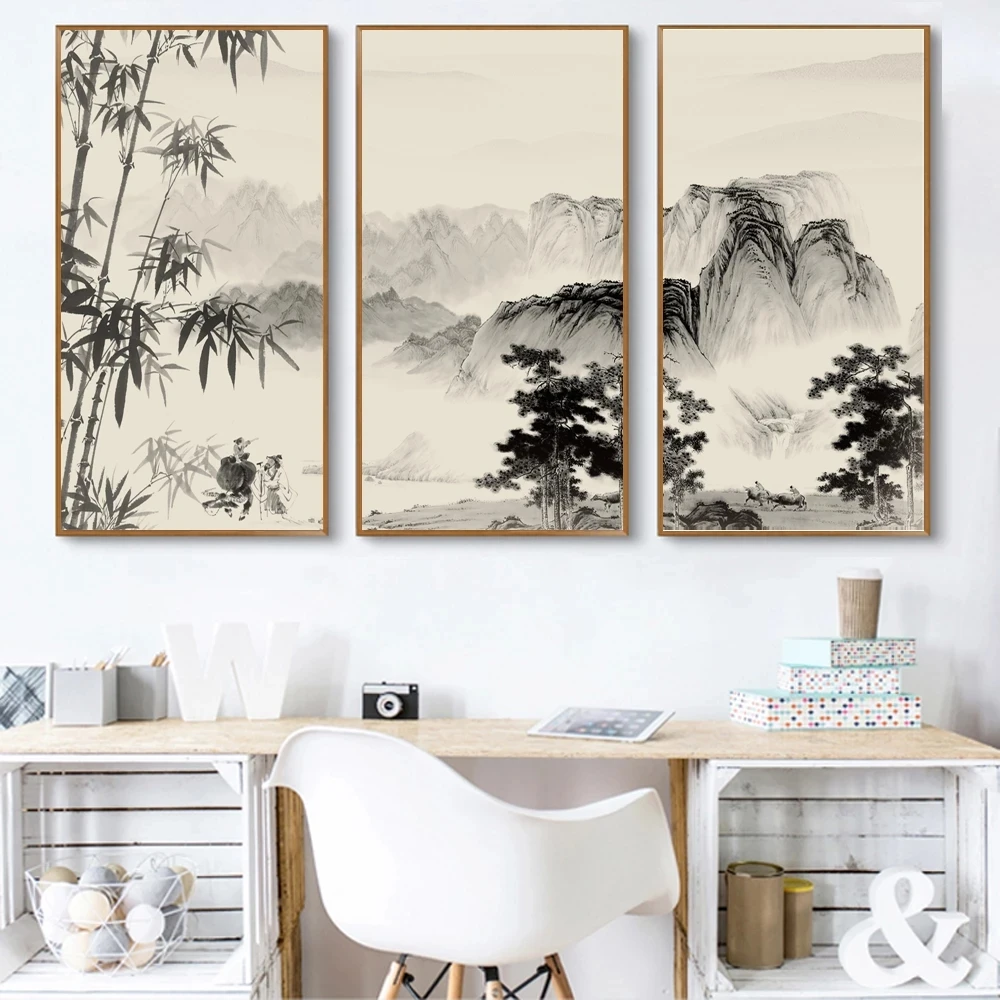 Chinese Traditional Style Black and White Landscape Painting for Sofa Background Canvas Painting Wall Art Picture HomeDecoration