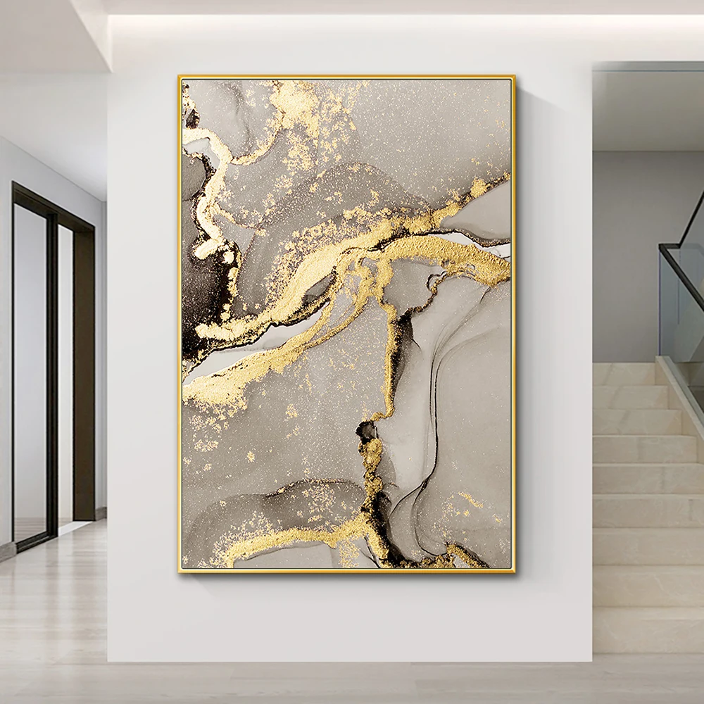 Marble Beige Gold Abstract Wall Art Posters Luxury Canvas Painting Prints Pictures Modern Living Room Interior Home Decoration
