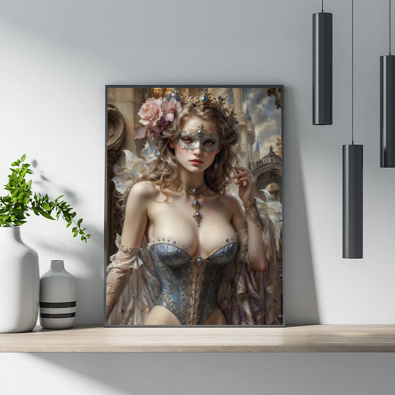 Mask Masquerade Sexy Woman Witch Fantasy Dark Posters and Prints Canvas Printing Wall Art Picture for Living Room Home Decor