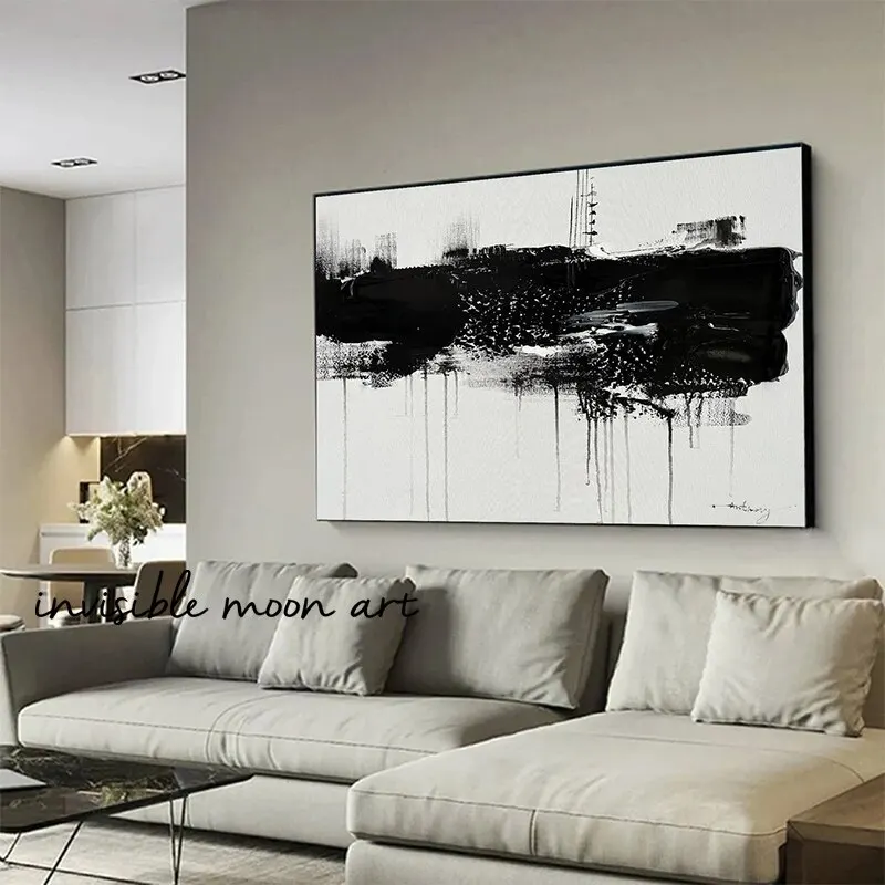 Minimalist Modern Abstract Black White Brush Stroke Ink Blot Art Poster Canvas Painting Wall Prints Picture Home Decor