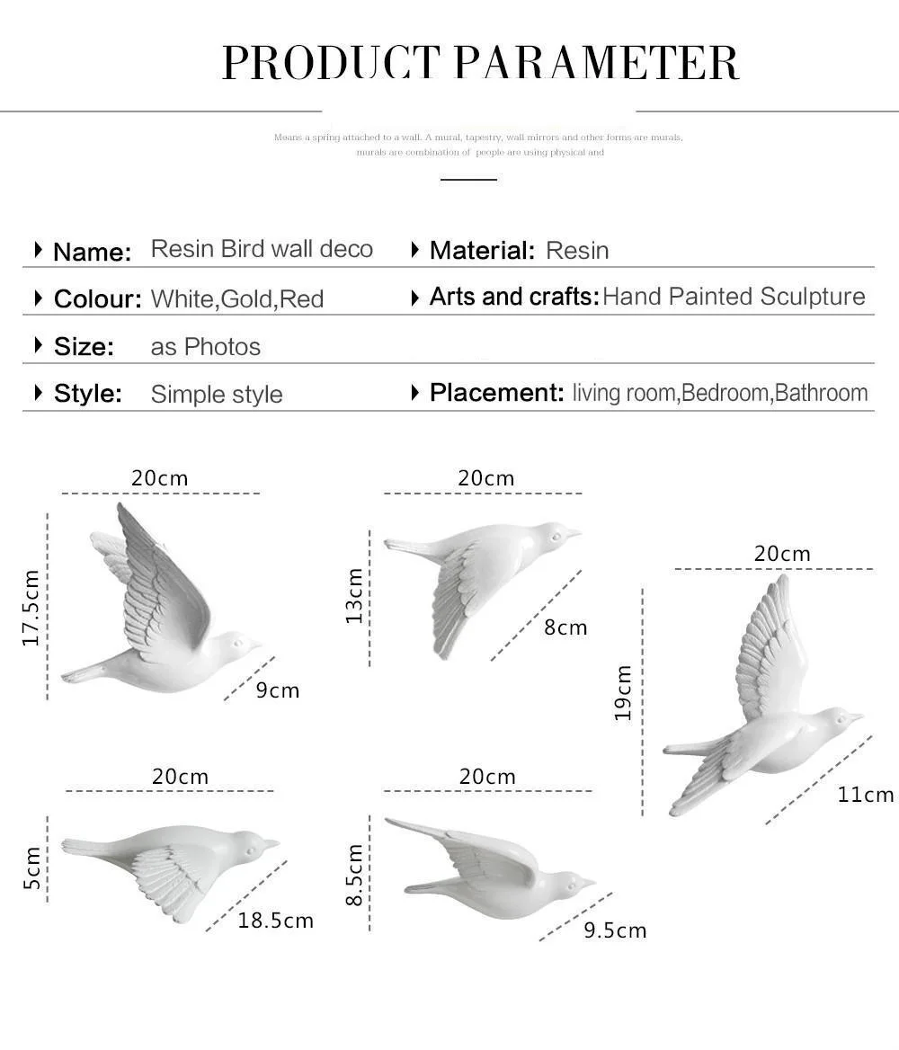 Nordic Style Resin Birds Creative For Wall 3D Sticker Living Room Animal Figurine Wall Mural TV Wall Background Home Decor Craft