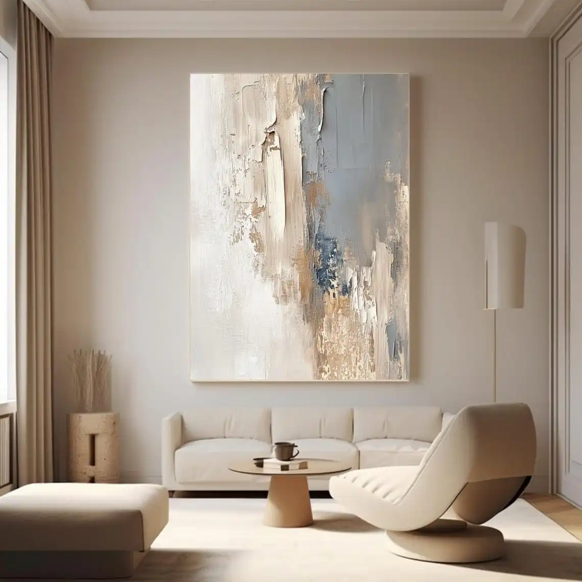Original Large Beige Blue Abstract Handmade Canvas Painting Gray Minimalist Art White Wall Art Textured Painting Home Decoration