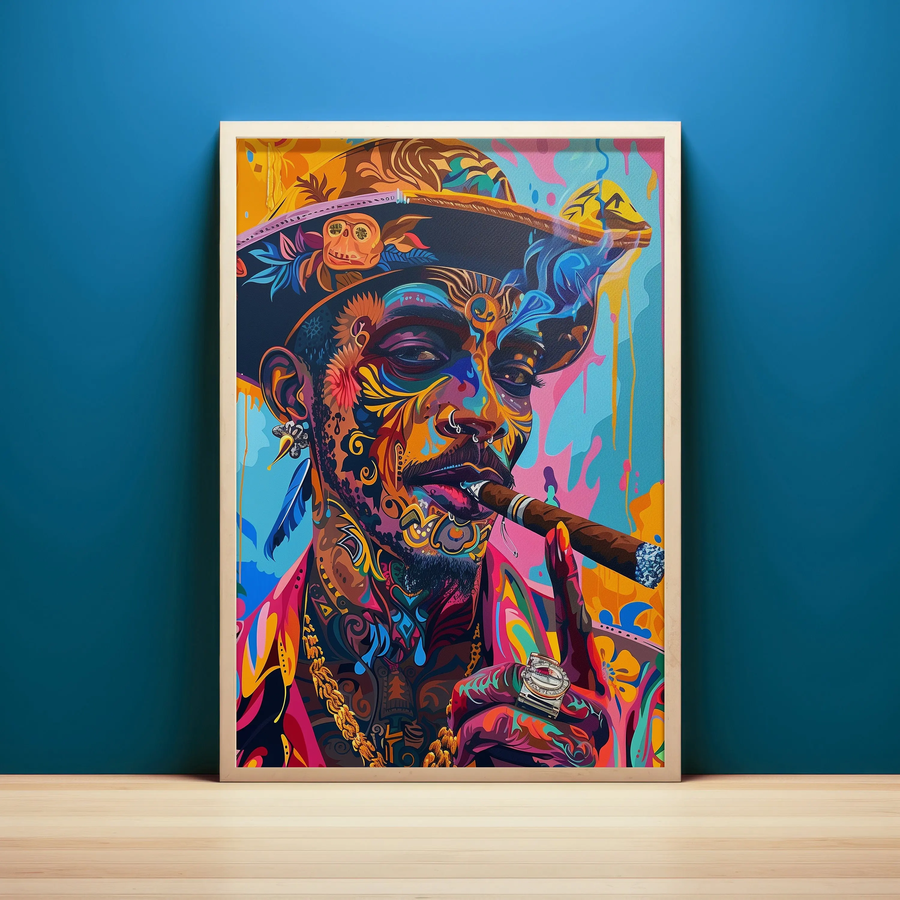 Pirate Pop Women Portrait Jamaican Cigar Smoking Surreal Poster Print Wall Art Pictures Canvas Painting Living Room Home Decor