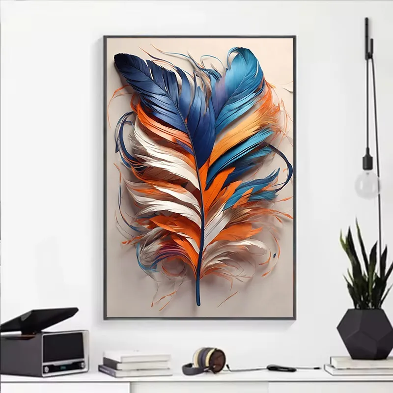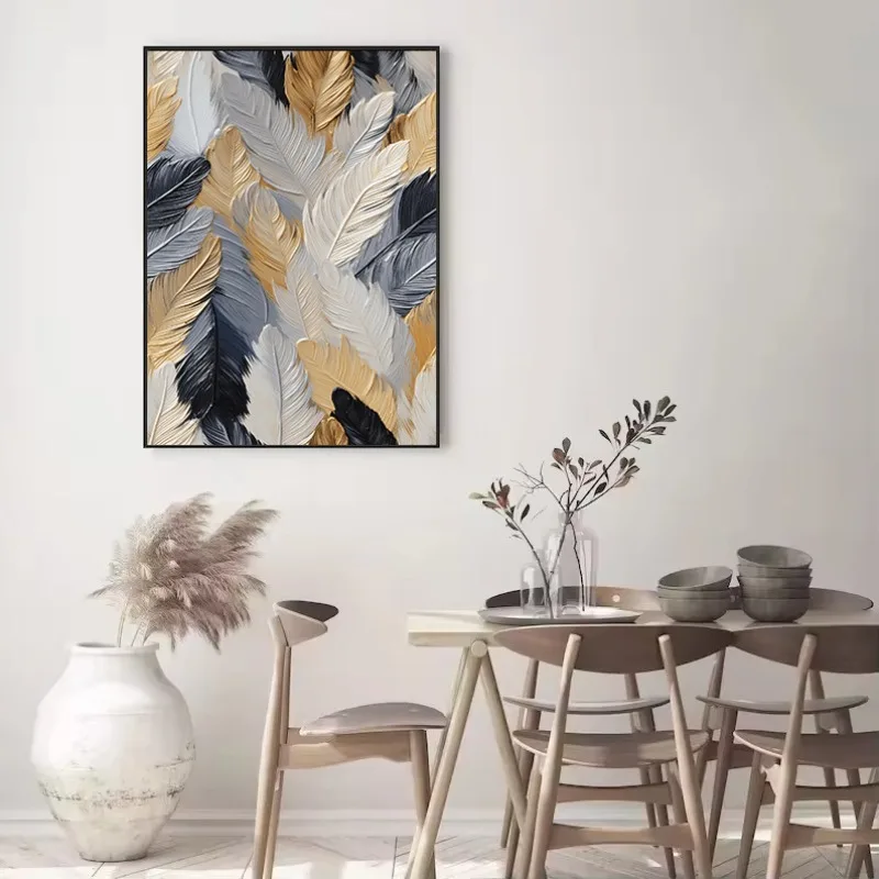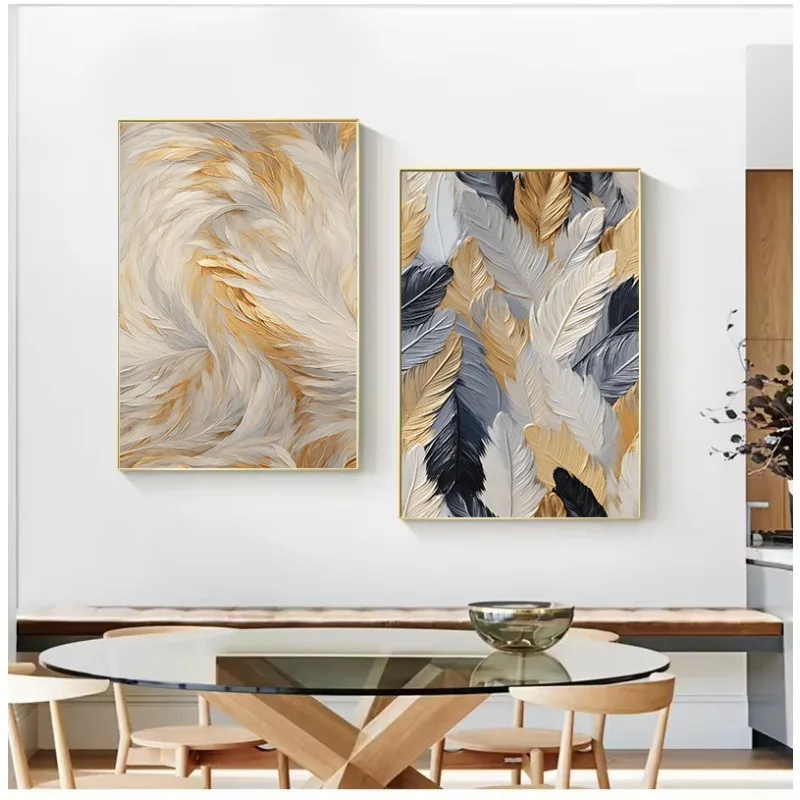 Scandinavian Abstract Golden Feather Nordic Poster Canvas Painting Wall Art Pictures Home Living Room Decor Gift